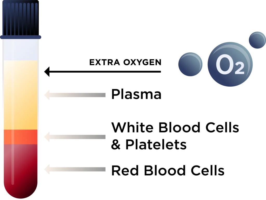 As pressure increases, oxygen molecules can move more easily through the body, helping you release carbon dioxide and improve oxygen delivery. With the added pressure, oxygen can also mix into your blood plasma, allowing it to reach areas where circulation may be limited. The result is deeper oxygen support for your mind and body recovery.